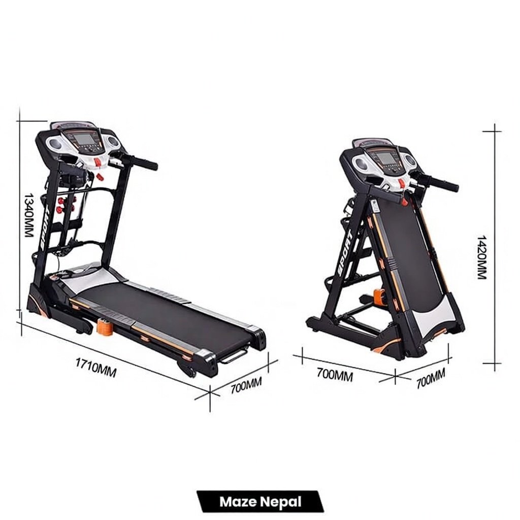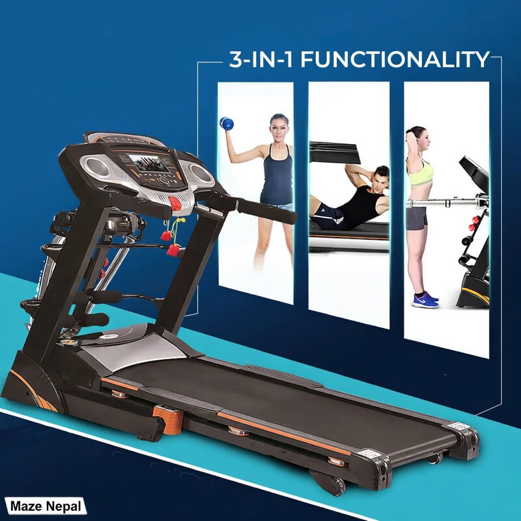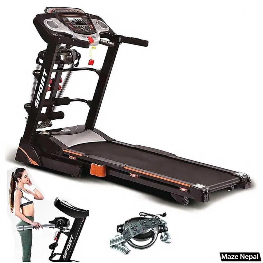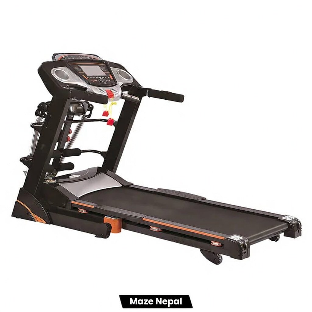 Powerful 3.5HP Treadmill 6068DS at best price in Nepal. Foldable design, 0.8-16 km/h speed, 15% incline, LED display, USB & Bluetooth. Perfect for home cardio, weight loss & fitness in Kathmandu, Pokhara. Nationwide delivery & COD available!