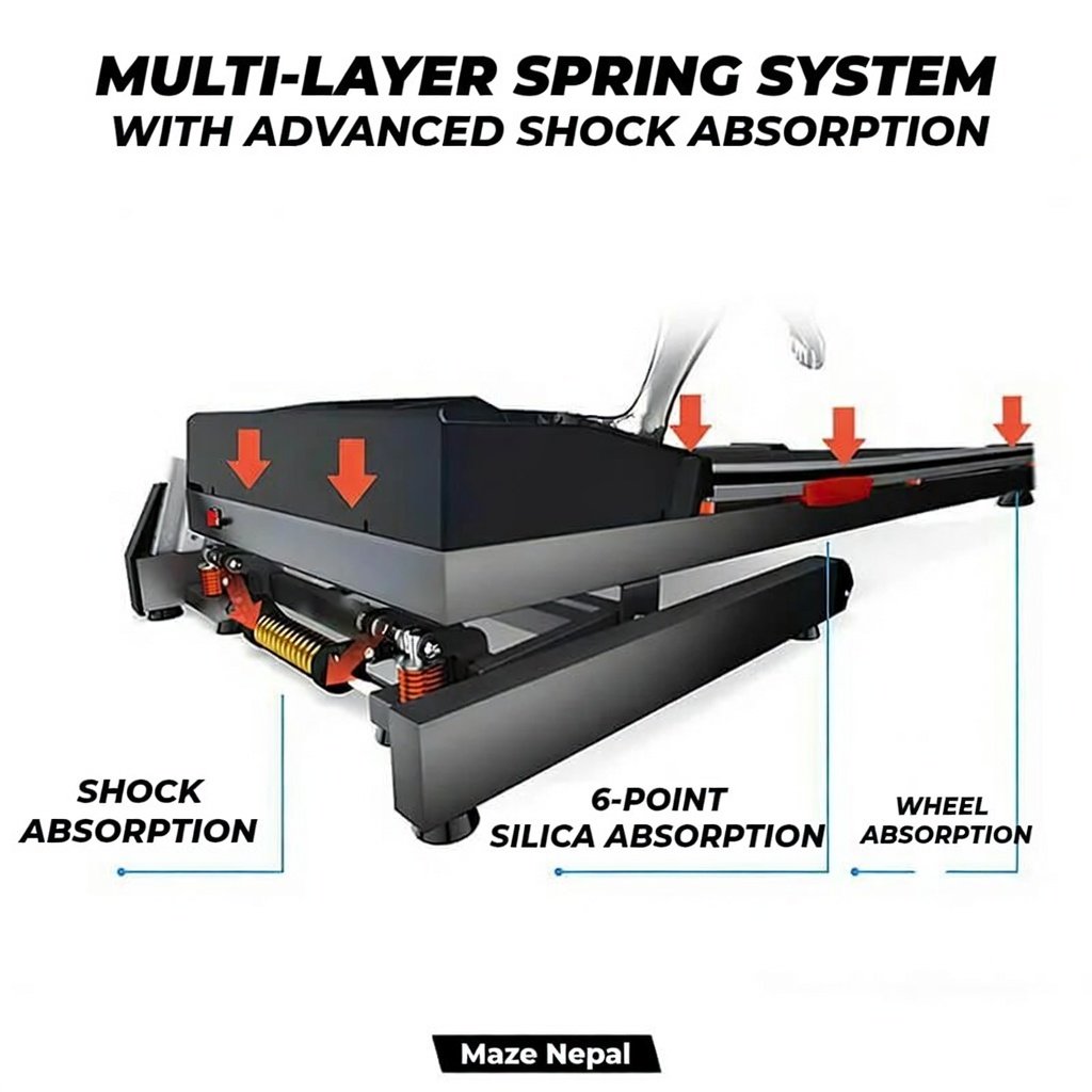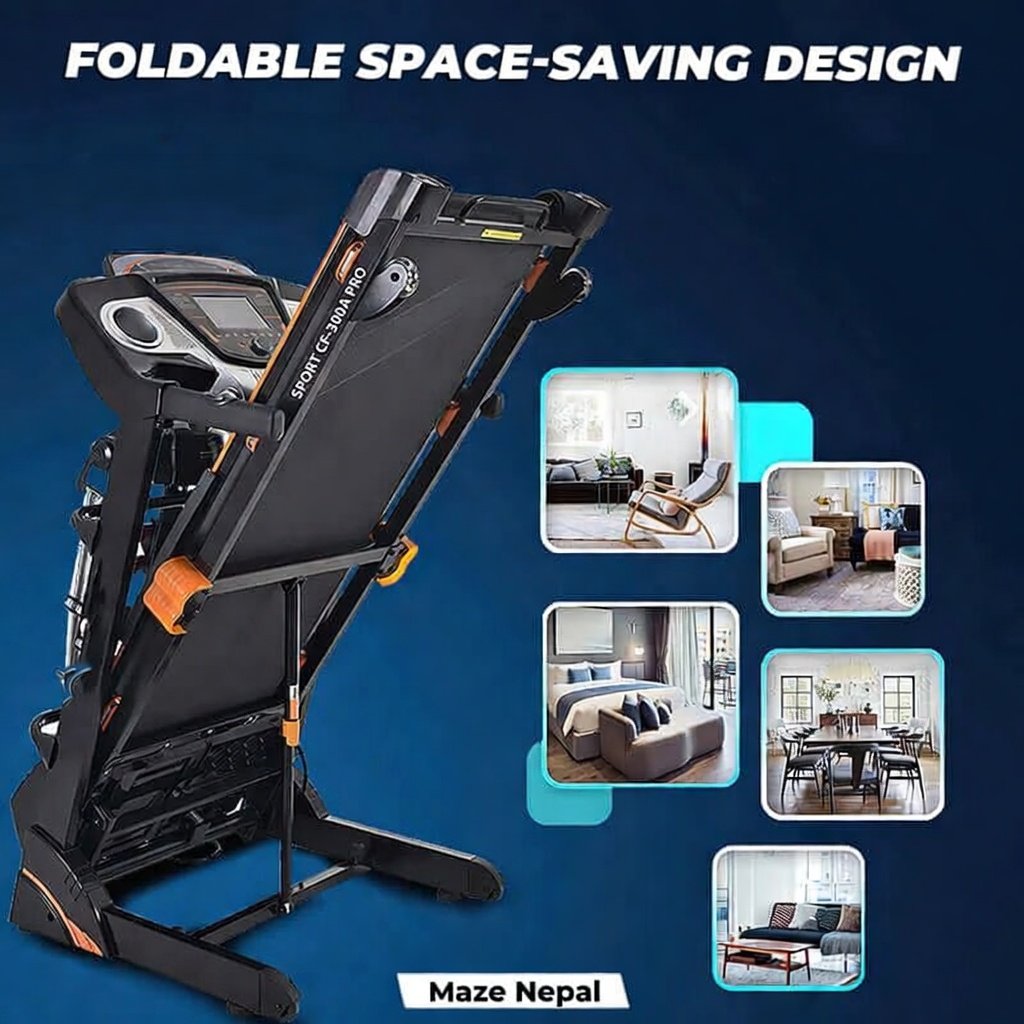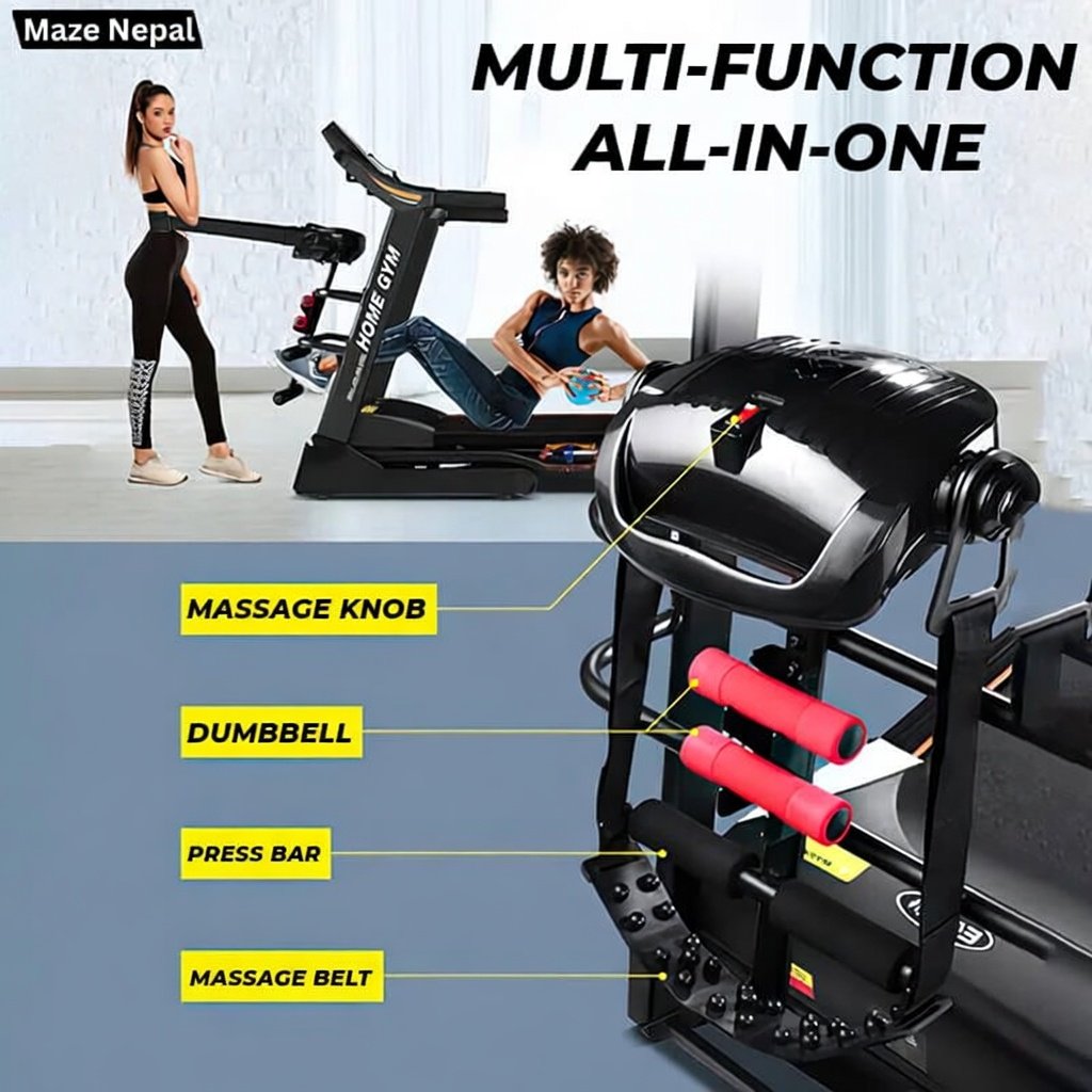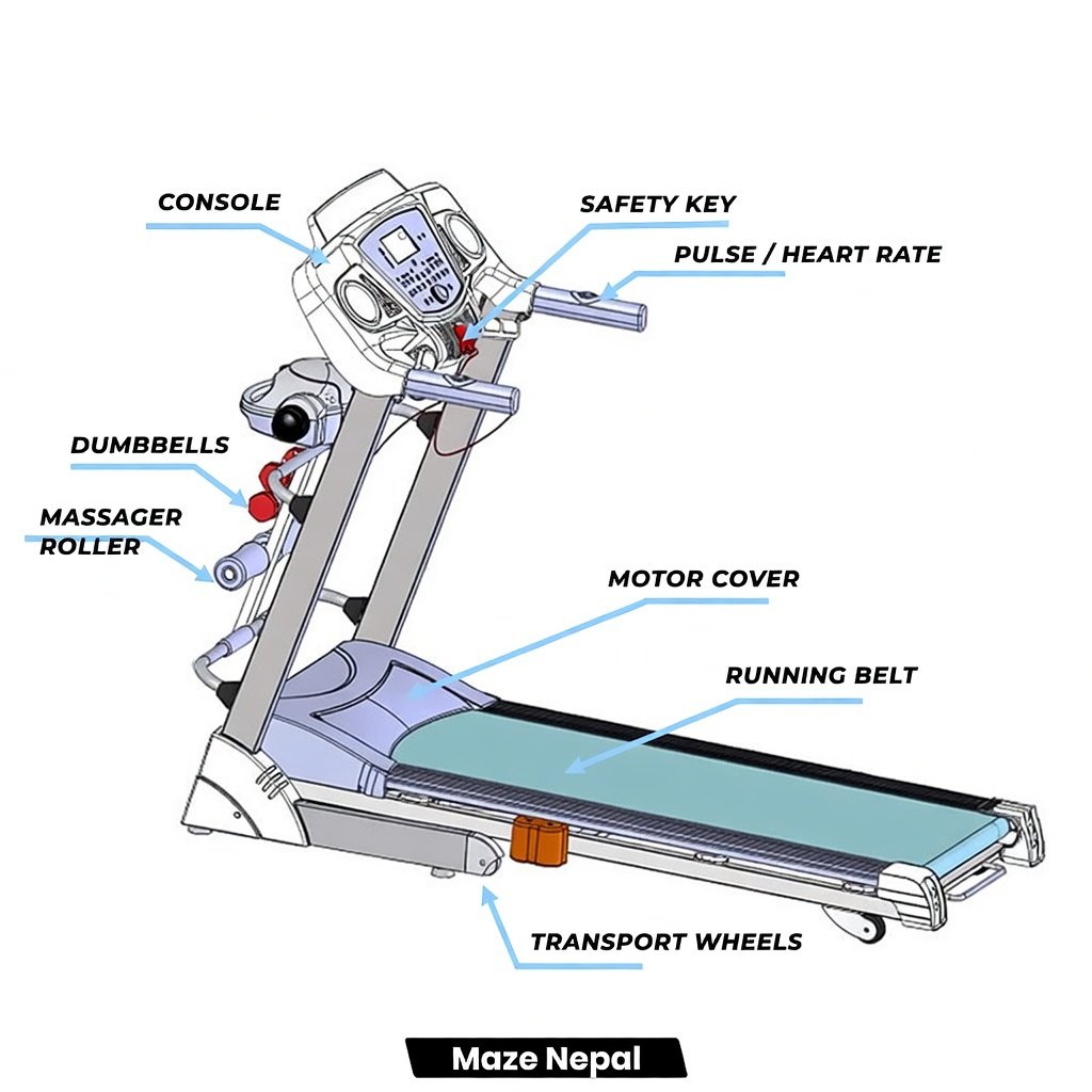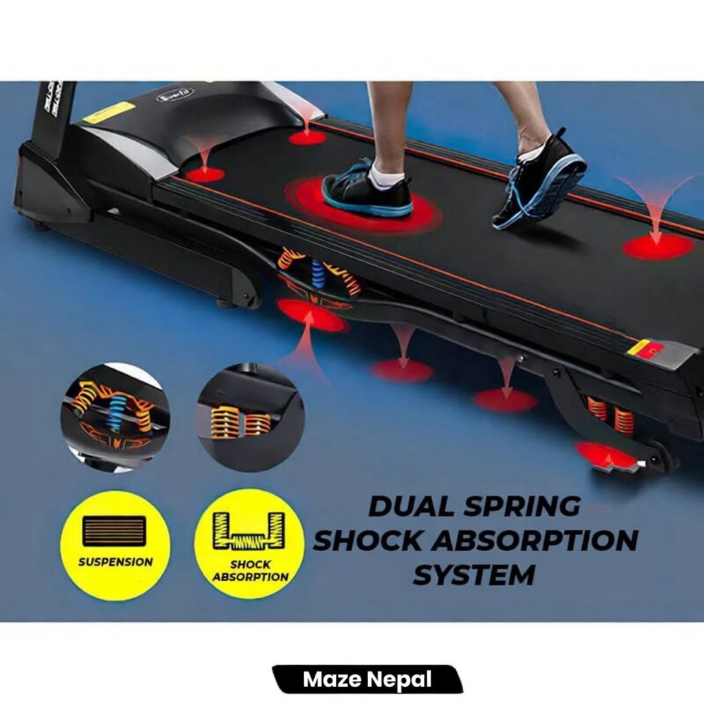 Powerful 3.5HP Treadmill 6068DS at best price in Nepal. Foldable design, 0.8-16 km/h speed, 15% incline, LED display, USB & Bluetooth. Perfect for home cardio, weight loss & fitness in Kathmandu, Pokhara. Nationwide delivery & COD available!