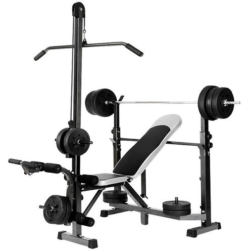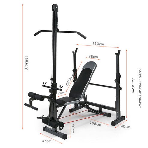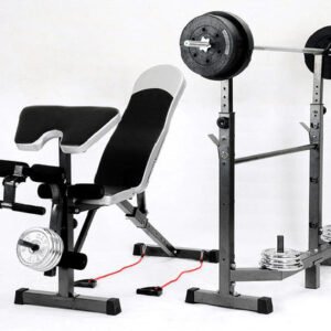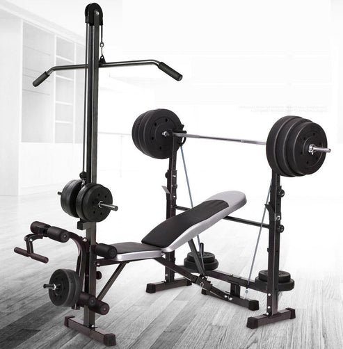 6-in-1 multifunction bench press with pulley system for full body home workout. Supports chest press, lat pulldown, leg extension, incline/decline bench training. Strong, stable, and ideal for home gym setup in Nepal.